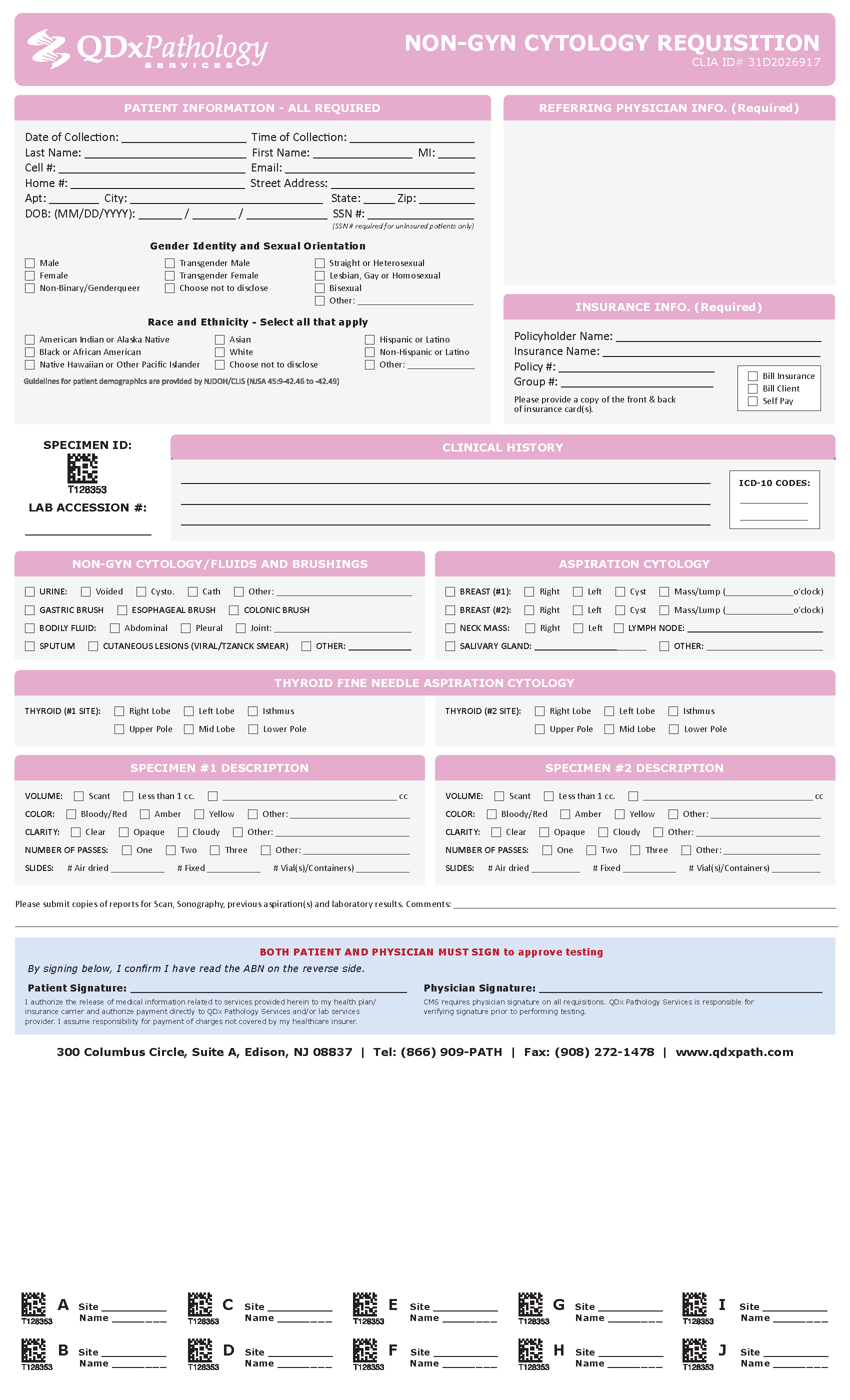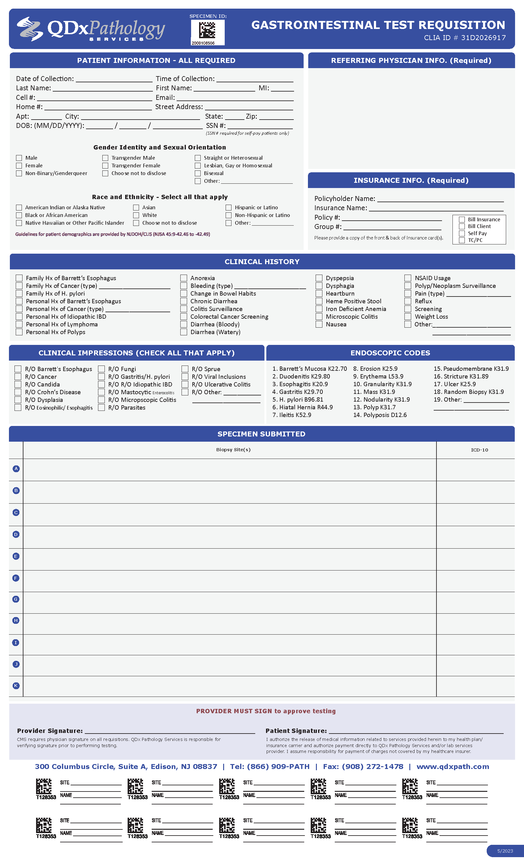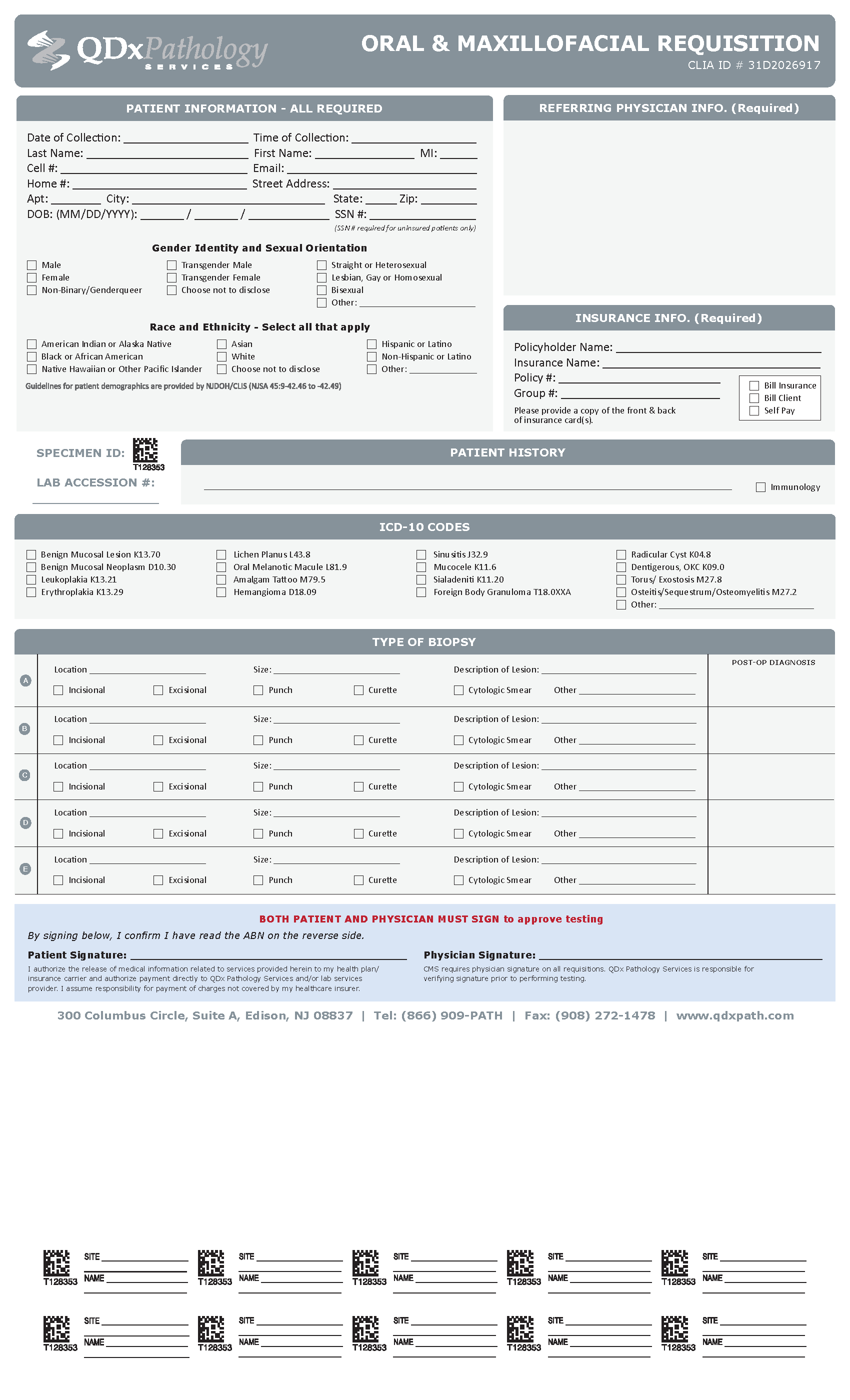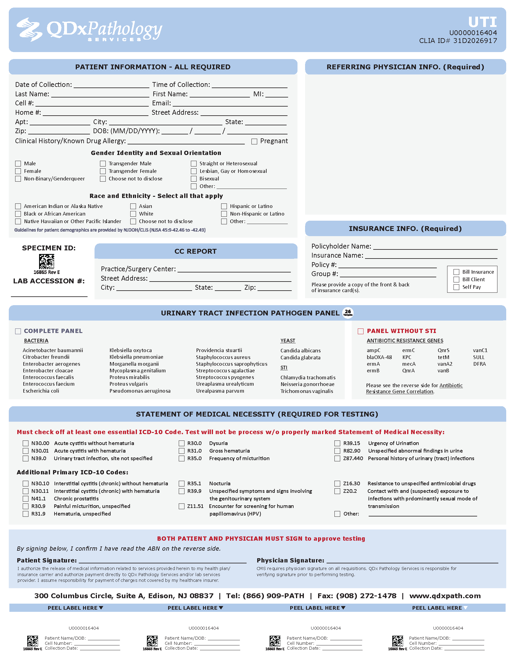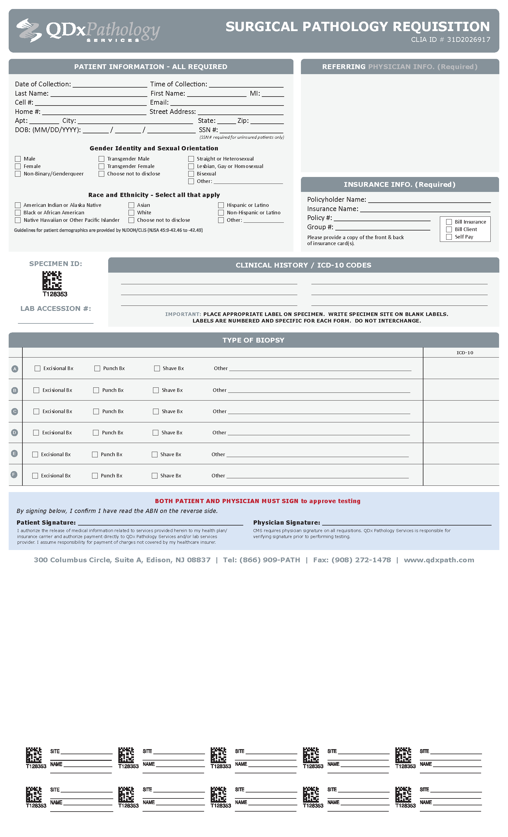 PDF printable requisition forms are listed below. Preprinted requisitions are provided with test kits or can be ordered separately.