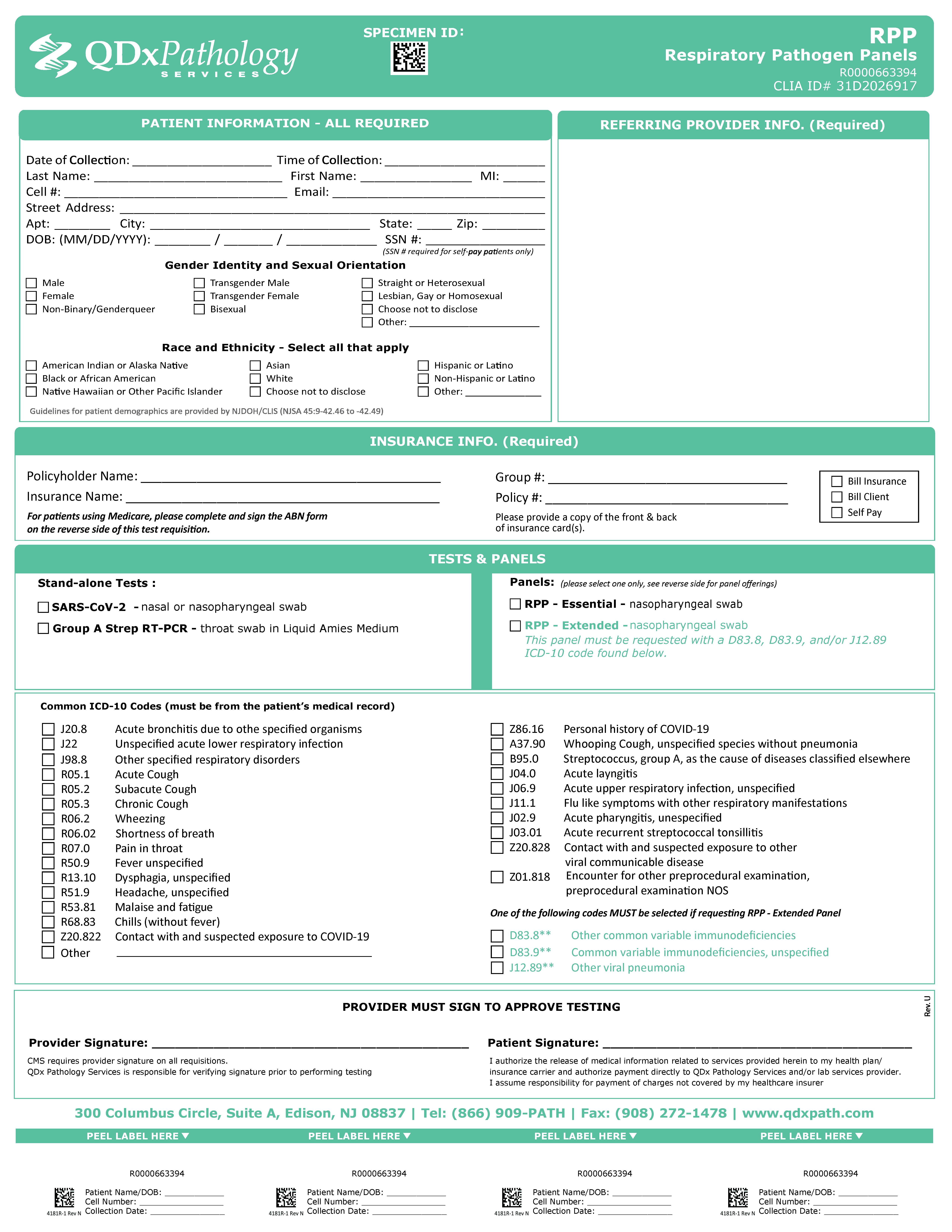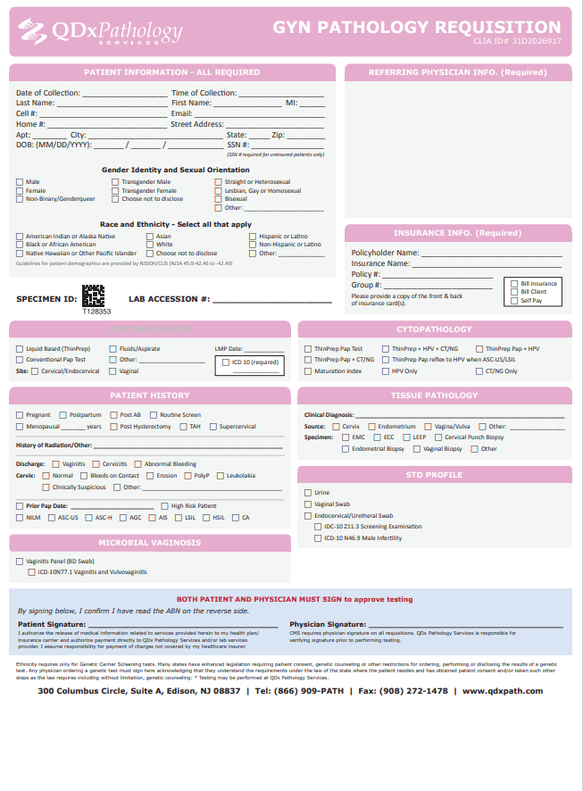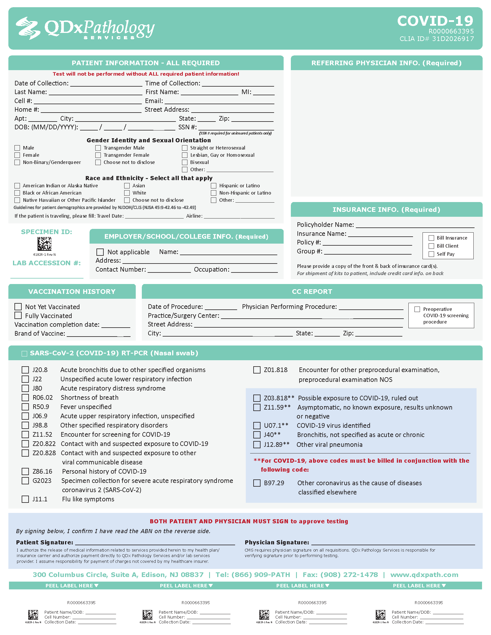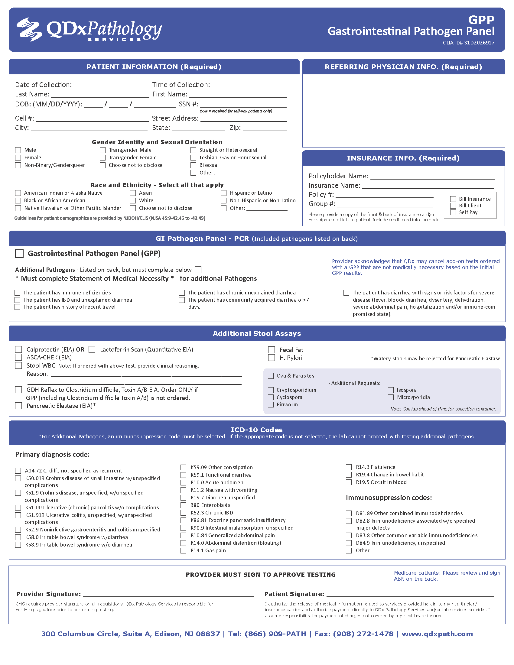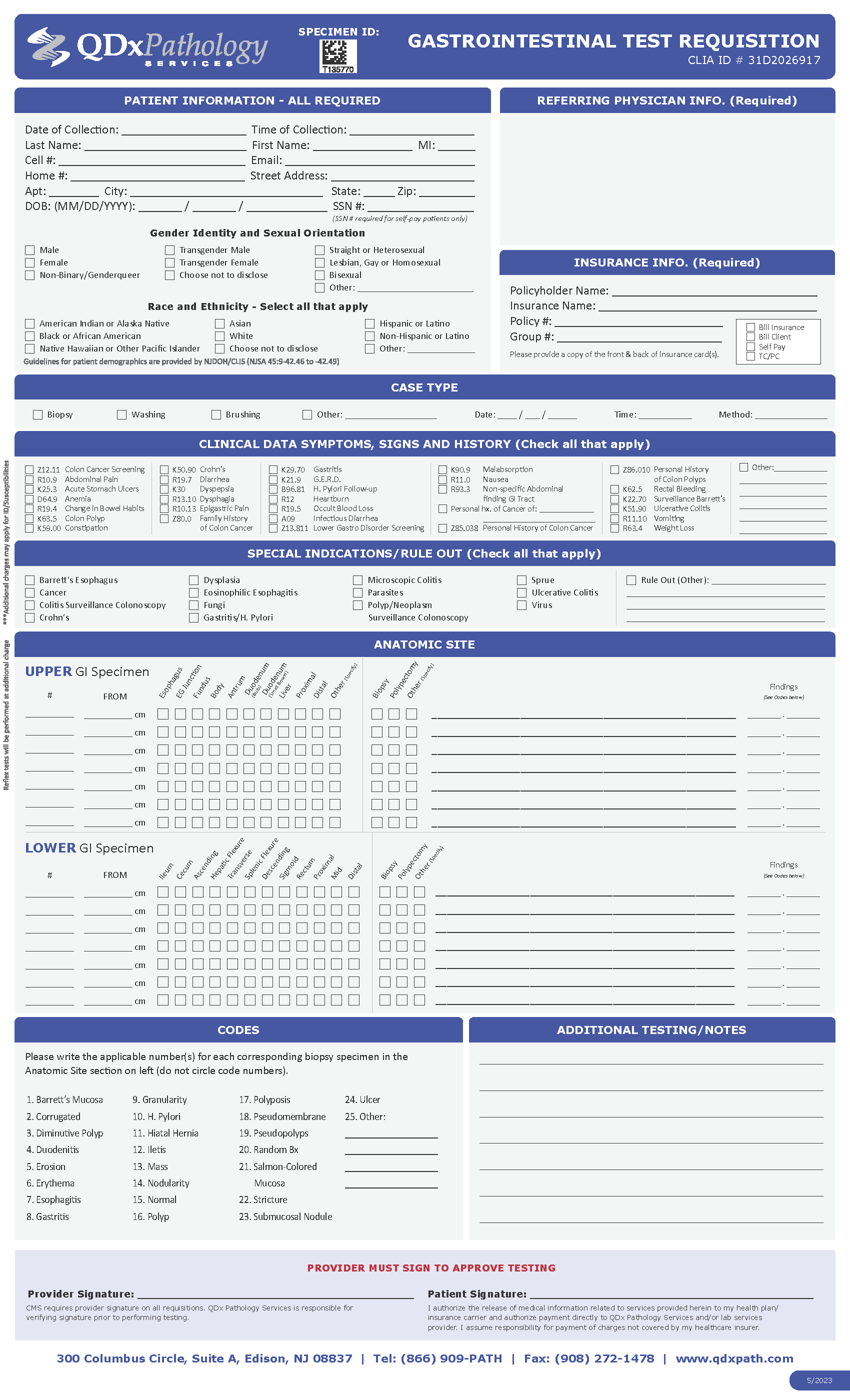 PDF printable requisition forms are listed below. Preprinted requisitions are provided with test kits or can be ordered separately.